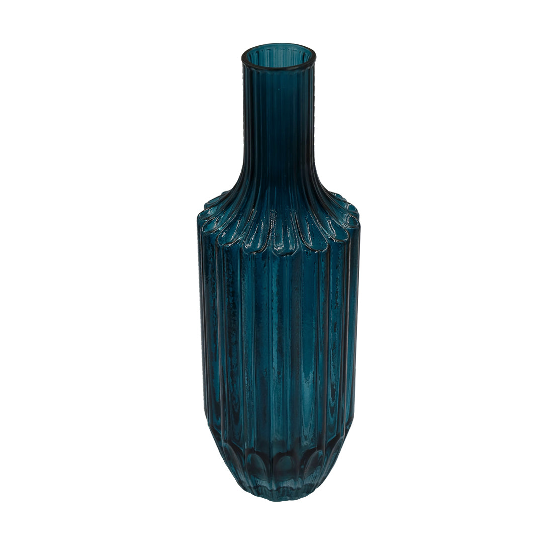 Cristal acabado Azul/ Accesorio de Cristalería. Florero/envase. Dimensiones: Largo: 10 cm Altura: 30 cm