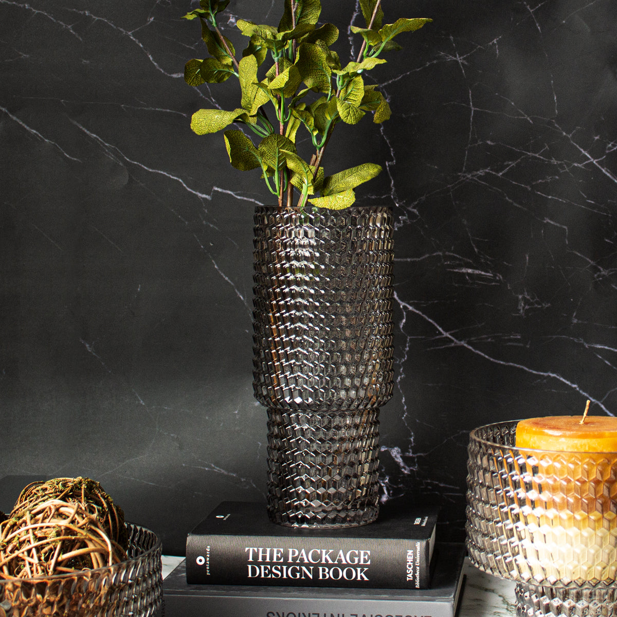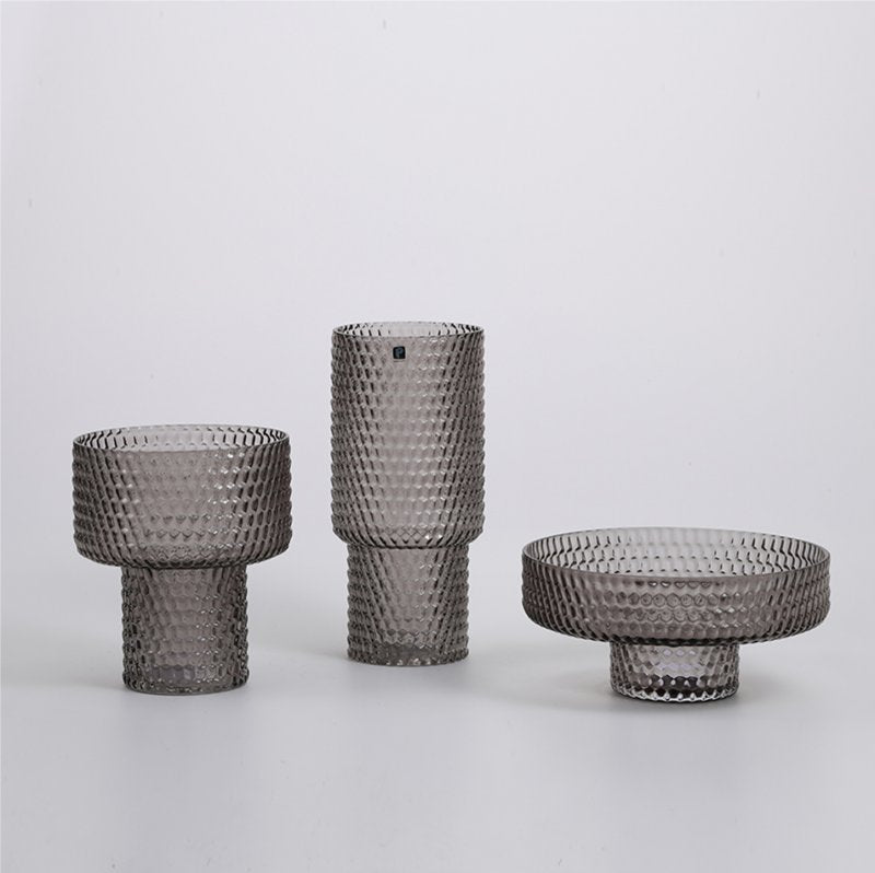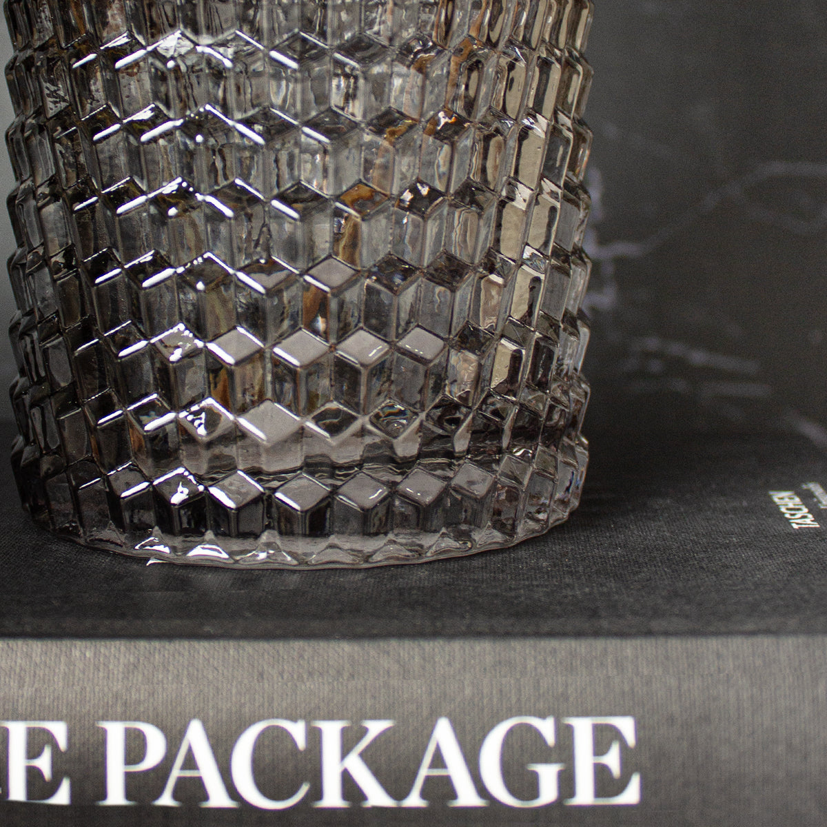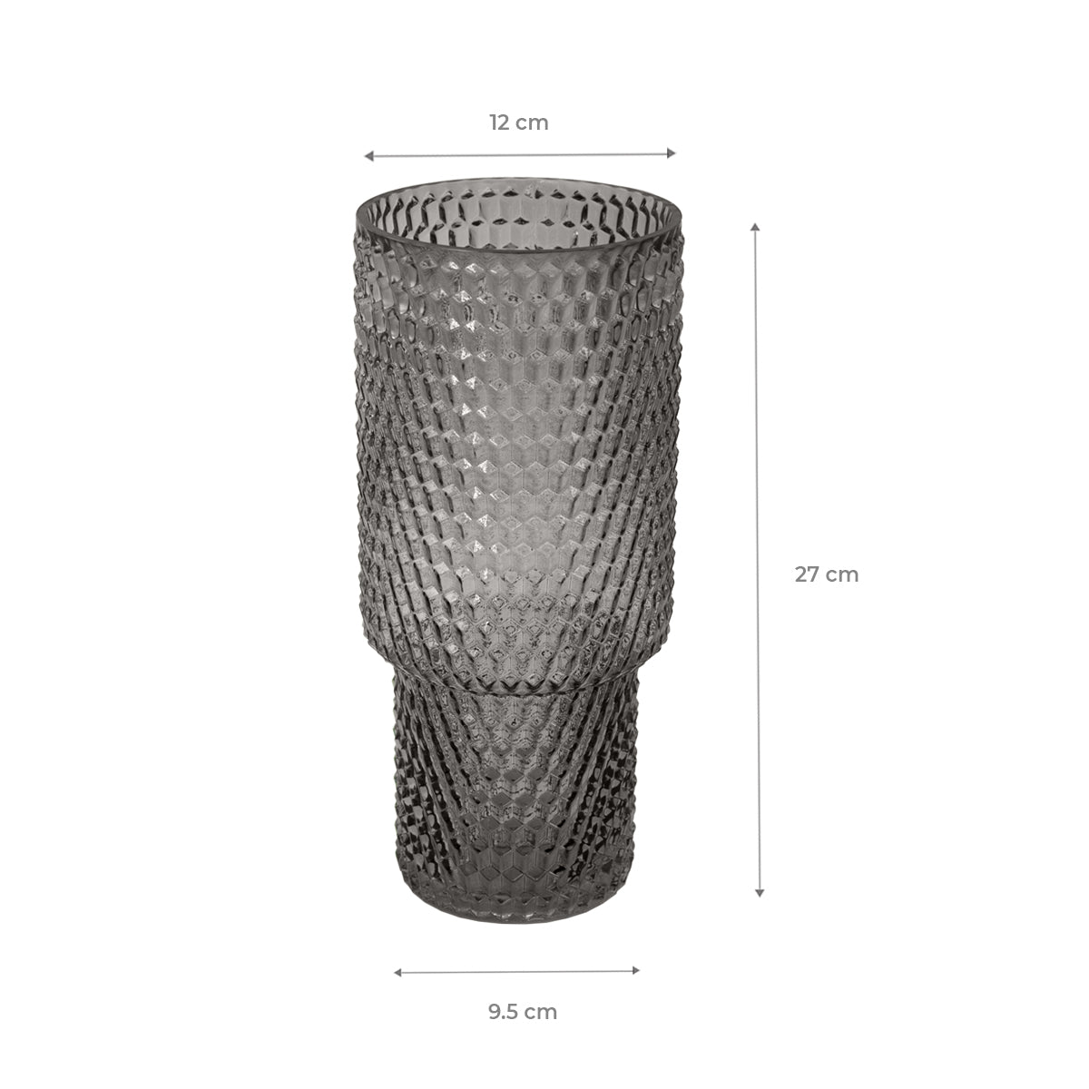 Vidrio humo acabado con textura geometrica. /Dimensiones: Largo: 12 cm/ Altura: 26,5 cm