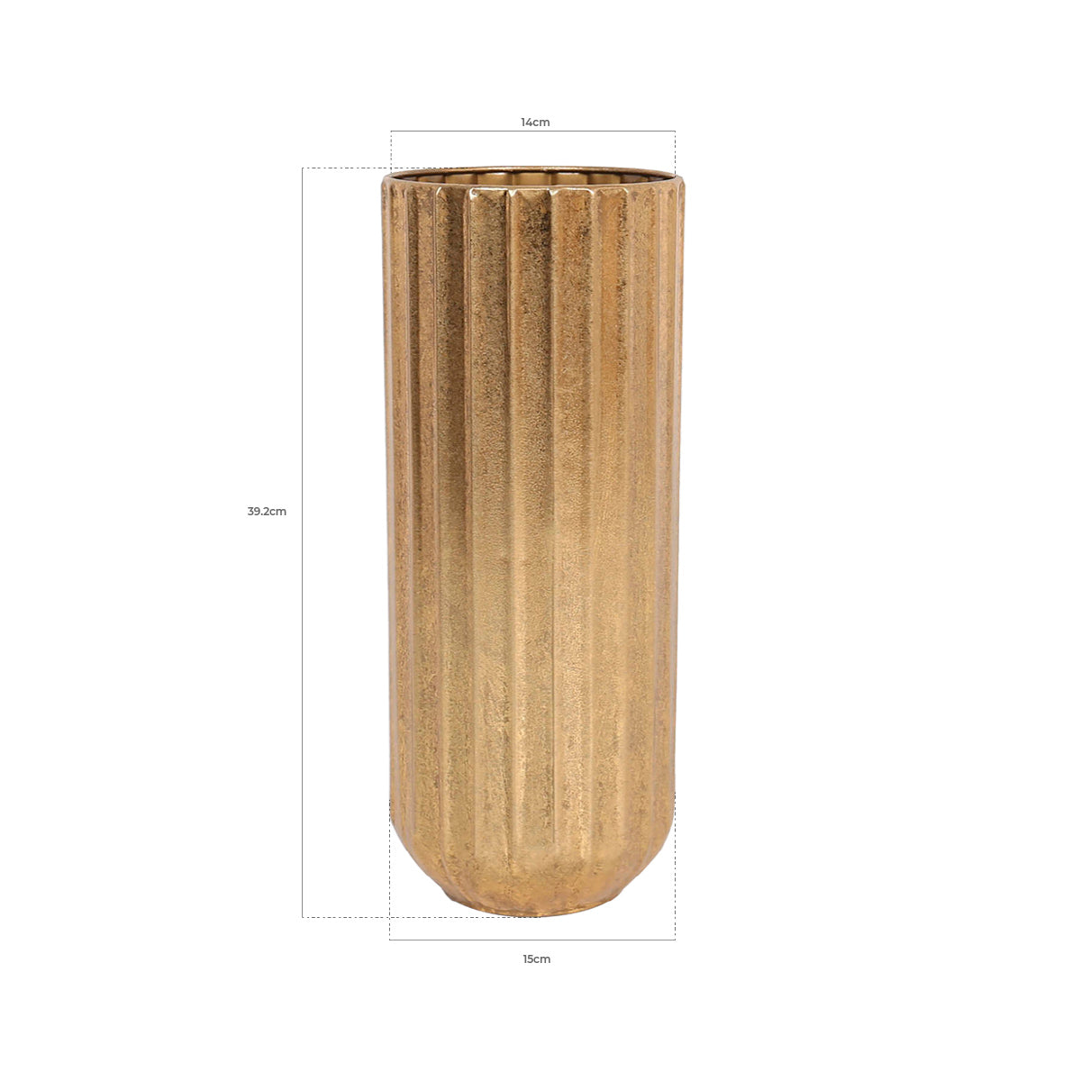 Este magnífico jarrón cilíndrico tendrá un efecto muy agradable una vez colocado en tus espacios, sin duda será el centro de atención.Su acabado sutilmente envejecido le da un aire refinado y versátil, ideal para complementar estilos de decoración modernos, clásicos o industriales. Perfecto para exhibir flores secas o como pieza decorativa por sí sola.