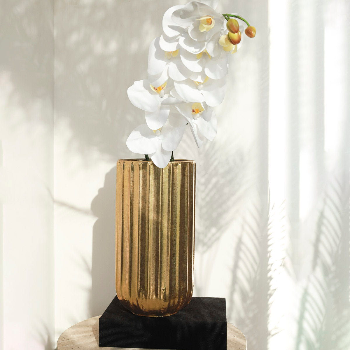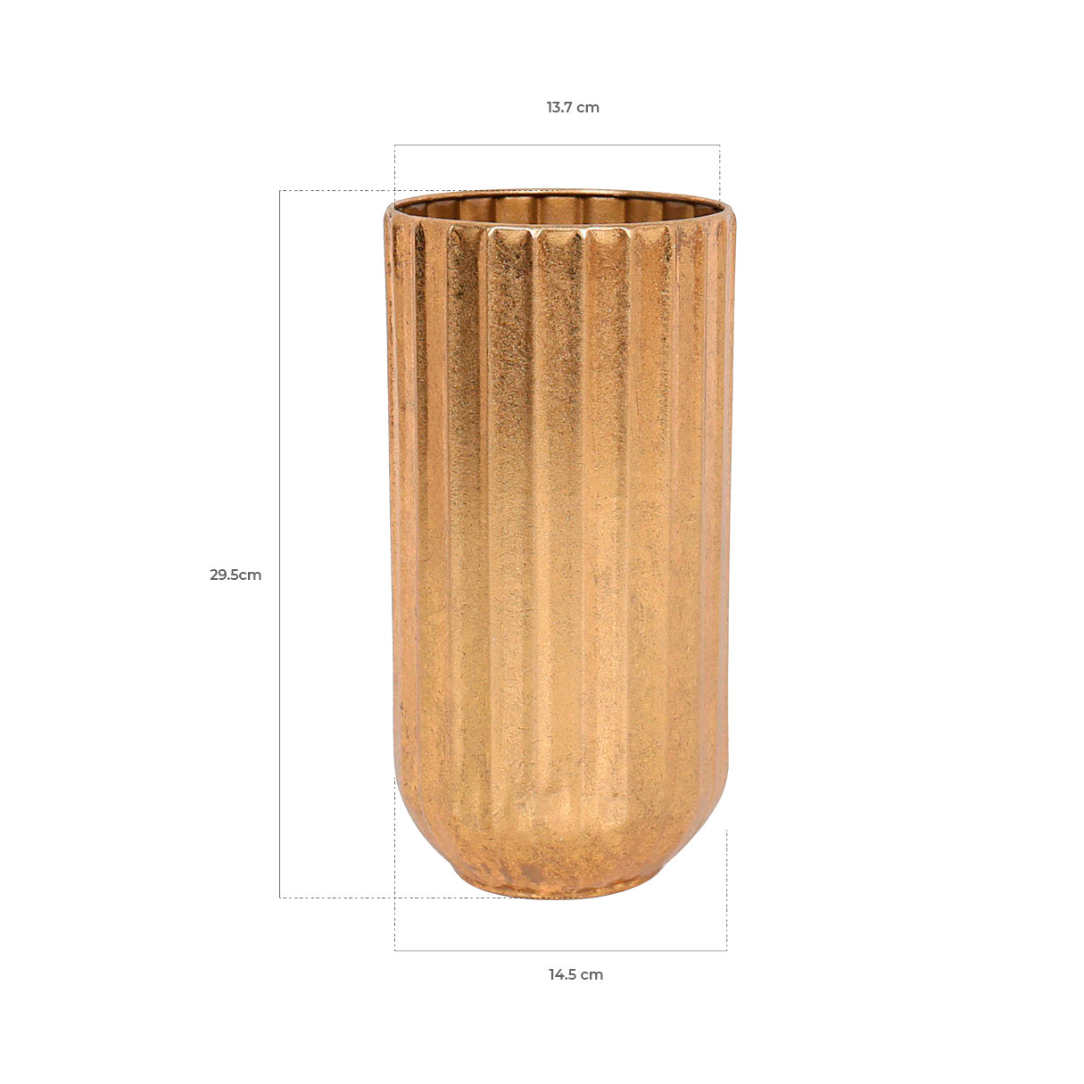 Este magnífico jarrón cilíndrico tendrá un efecto muy agradable una vez colocado en tus espacios, sin duda será el centro de atención.Su acabado sutilmente envejecido le da un aire refinado y versátil, ideal para complementar estilos de decoración modernos, clásicos o industriales. Perfecto para exhibir flores secas o como pieza decorativa por sí sola.