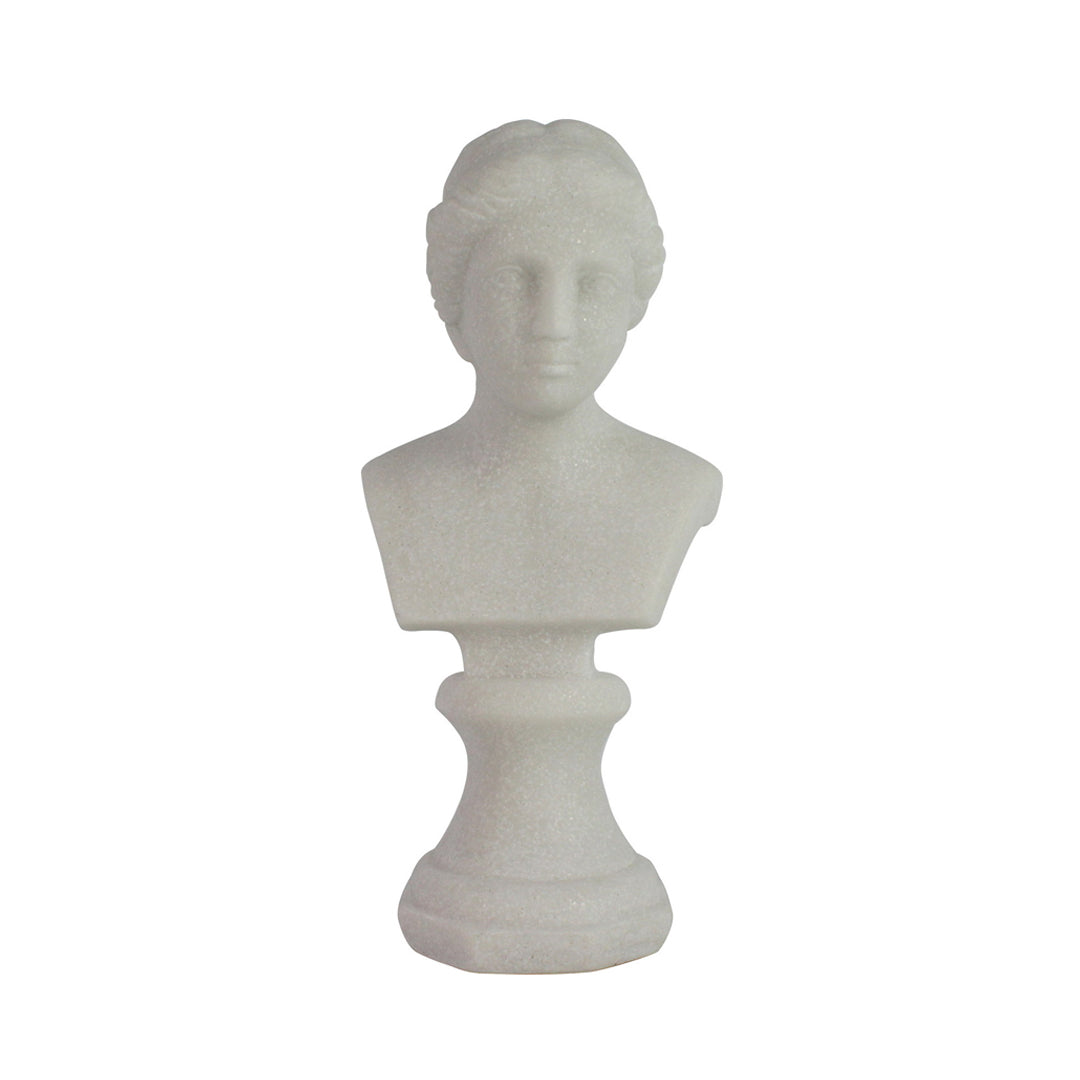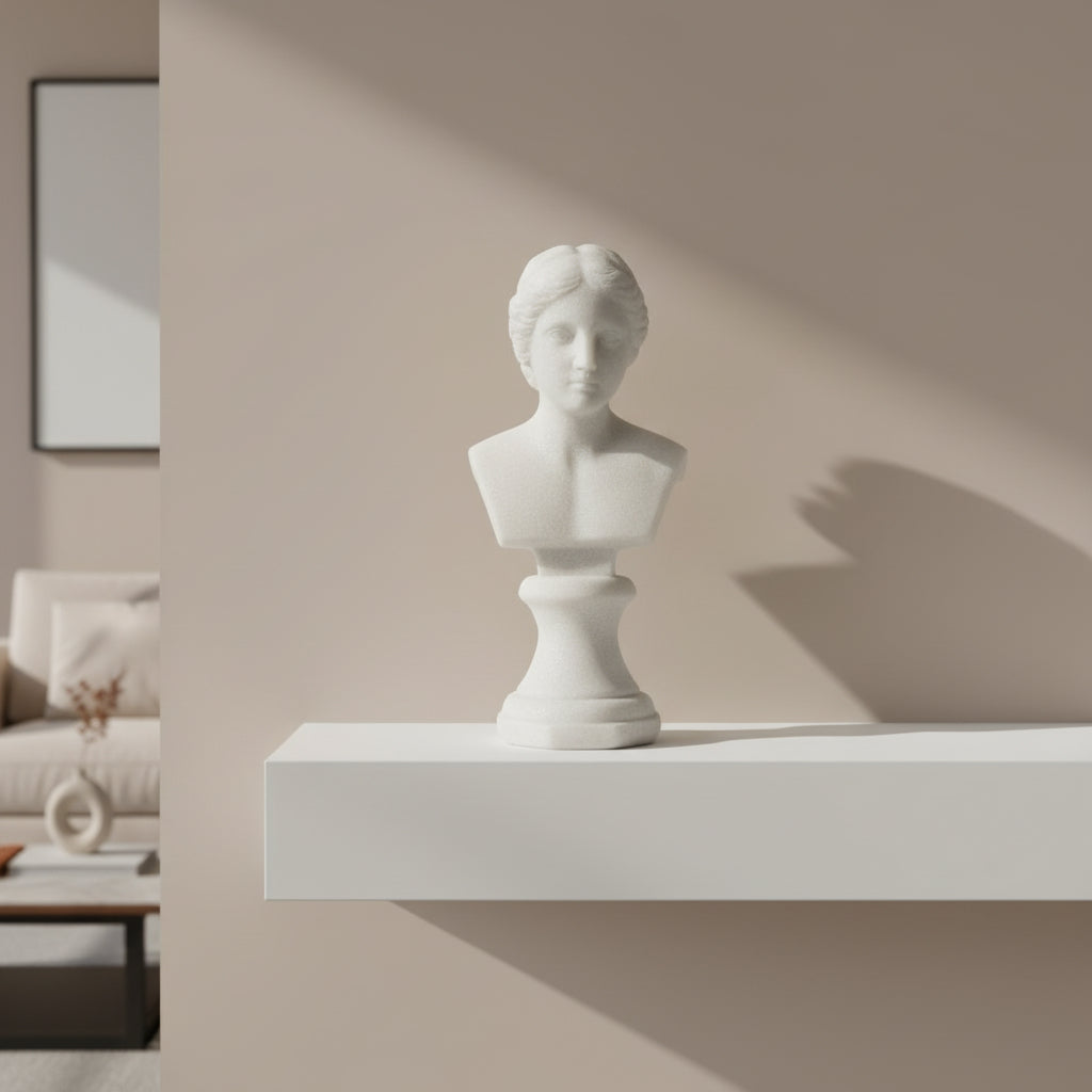 Mejora la estética de tu hogar con esta elegante escultura decorativa de busto. Hecha en resina y con un elegante acabado blanco, esta pieza aportará un toque de sofisticación a cualquier habitación. Añade un toque artístico y elegante a tu hogar con esta pieza única.