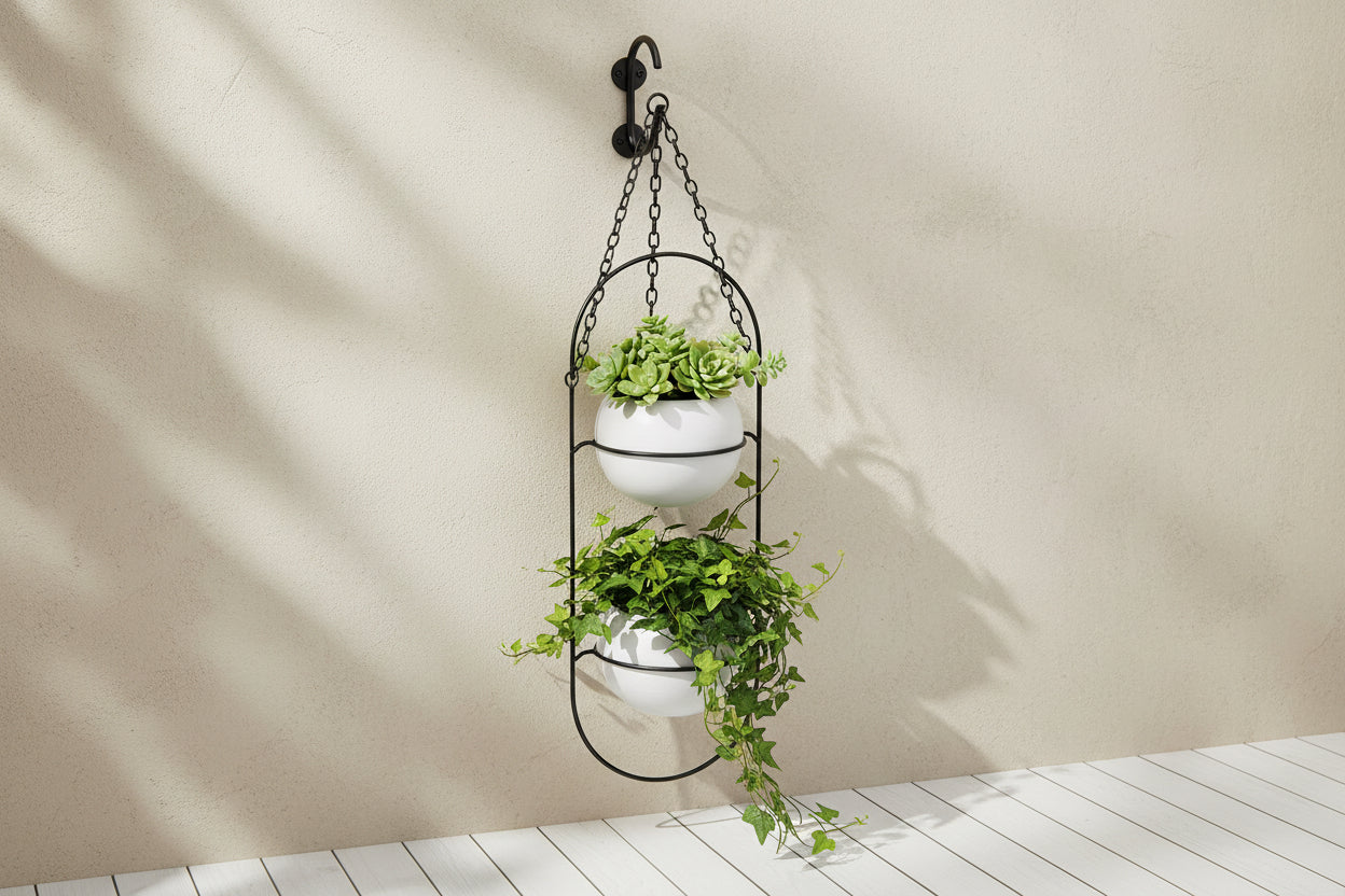Déjate cautivar por nuestras Macetas Colgantes de 2 niveles . Con su diseño, añadirán un toque artístico a tu jardín o terraza. Disfruta de la belleza de tus plantas en este asombroso accesorio, perfecto para espacios exteriores de lujo.