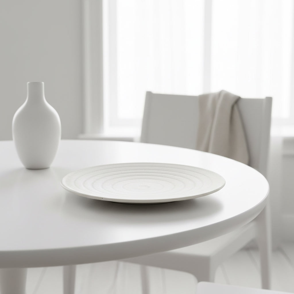 Un accesorio decorativo que aportará un toque de elegancia y sofisticación a cualquier espacio. Con su diseño minimalista y sencillo, este plato es perfecto para complementar cualquier decoración. Hecho de barro en un acabado blanco, es un recuerdo único de la artesanía tradicional.