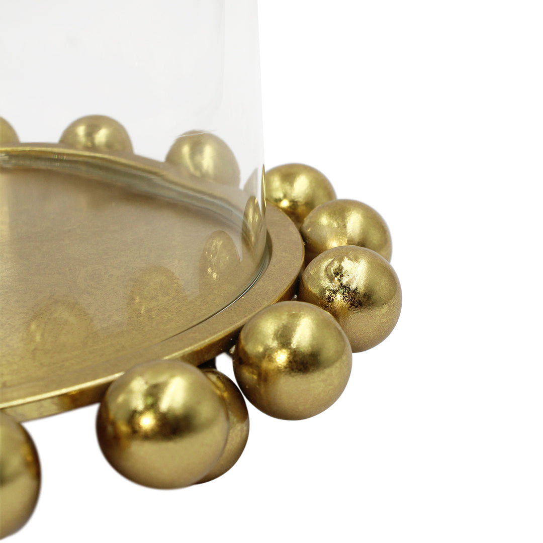 Compuesto por un domo de vidrio con una base de metal, este elegante accesorio es ideal para restaurantes y complemento para tu cocina. Perfecto para decorar tu espacio, creando un ambiente sofisticado y moderno.